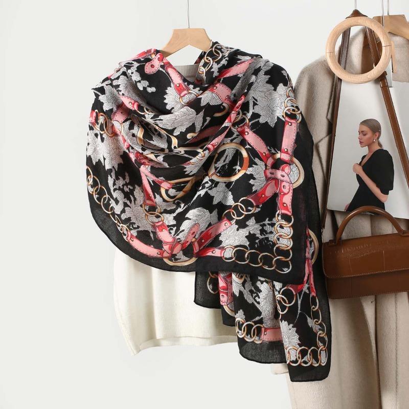 Новый ретро кожаный ремень-цепочка с принтом женский шарф шелковый шарф весенне-осенний женский модный шарф пряжа