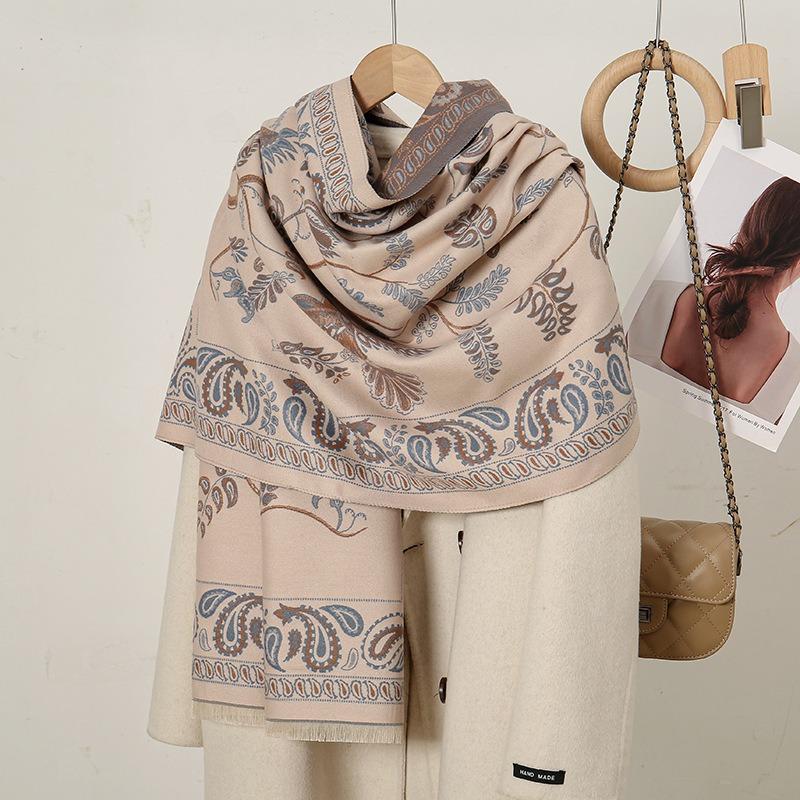 Осень и зима новый имитация кашемира утолщенный теплый шарф женский литературный и свежий узор «голубая птица и кешью», удлиненная утолщенная шаль