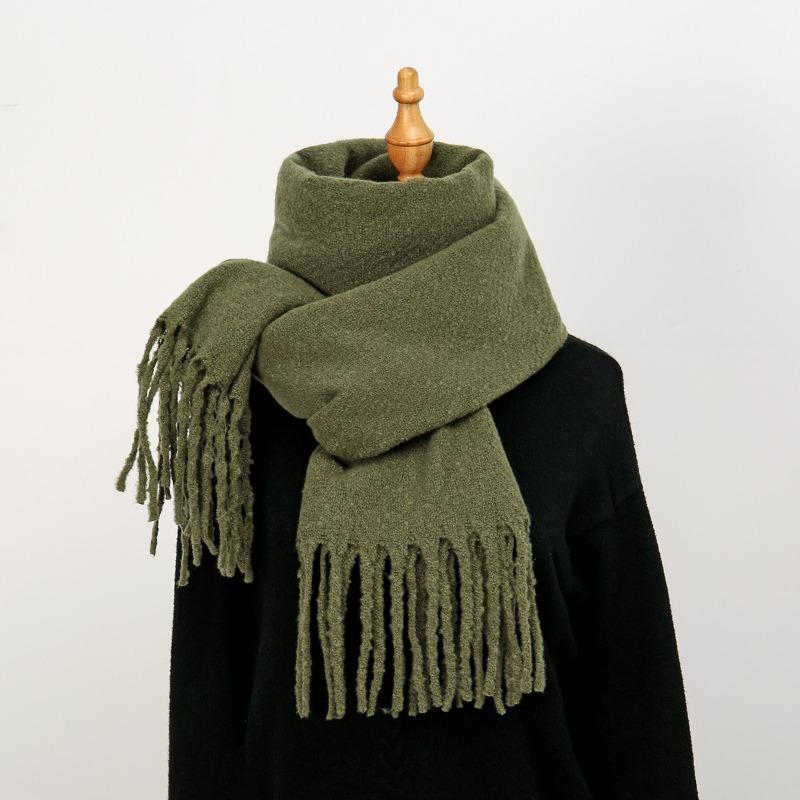 Осень и зима новый женский шаль длинная кисточка борода трава зеленый утолщенный однотонный молочный флис шарф шарф женский