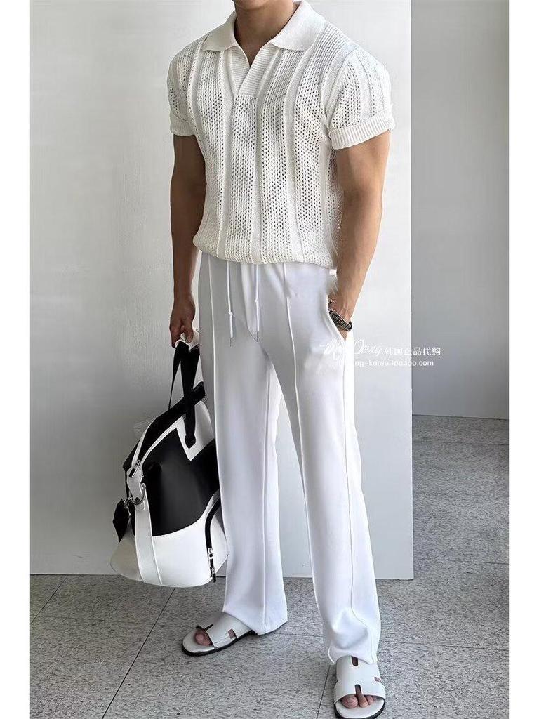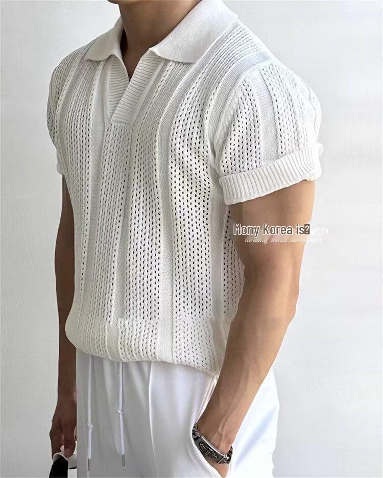 Мужское летнее трикотажное поло - Приталенная футболка с коротким рукавом из ледяного шелка