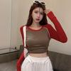 Женский облегающий кроп-топ с длинными рукавами и кулиской - Осень 2022
