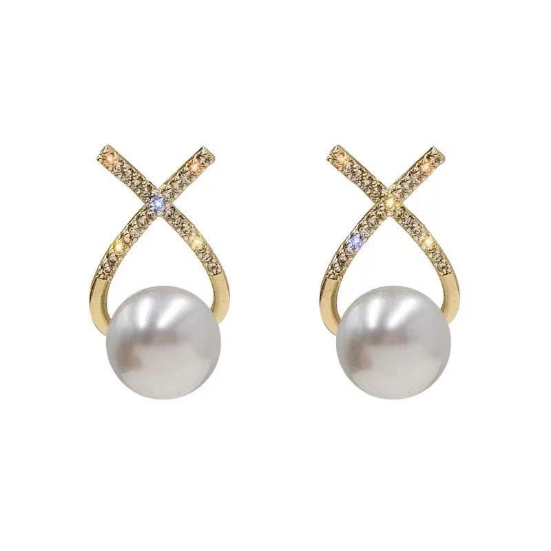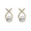 Серьги-пусеты из серебра 925 пробы в корейском стиле в виде буквы X с жемчугом - Ретро французский стиль для женщин