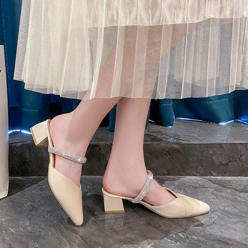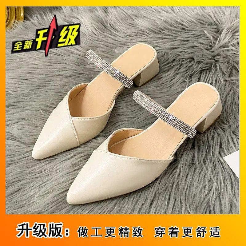 Французские полутапочки baotou женские летние 2025 новые заостренные стразы модные толстые каблуки сказочный ветер прохладные тапочки женские