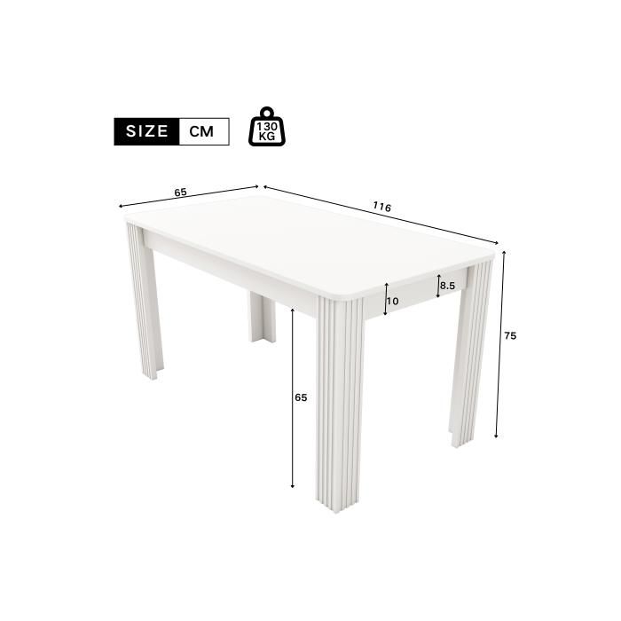 Table de salle à manger à quatre pieds, Table de salle à manger en chêne, Table de salle à manger rectangulaire, Blanche