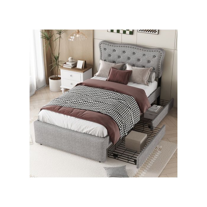 Lit - MUVOE - 90x200 cm - Rembourré - Tiroirs de rangement - Design contemporain — купить товар онлайн с бесплатной доставкой по всему миру!