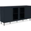 Bücherregal mit Türen aus gehärtetem Glas und verstellbaren Einlegeböden, vier Türen, spritzlackierter MDF-Schrank, schwarz