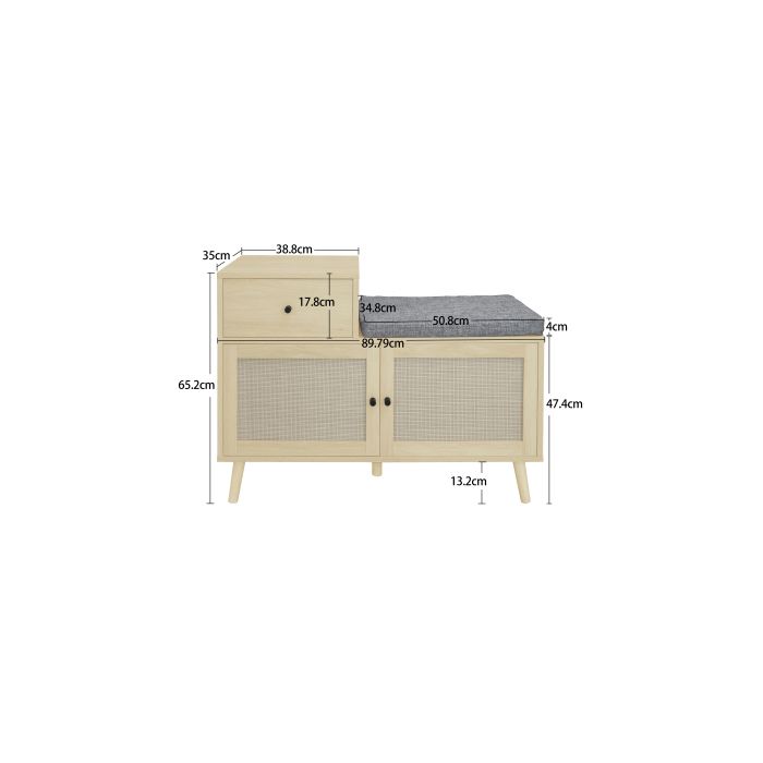 Banc à chaussures - MUVOE - Bois naturel - 2 portes - 1 tiroir - Rembourré