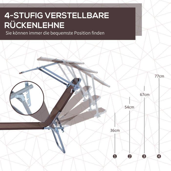 Chaise longue - MUVOE - Pliable avec protection solaire - Métal - Marron - 187x58x36 cm