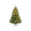HOMCOM Sapin de Noël avec éclairage LED, 60 cm, pommes de pin et baies rouges, support inclus, vert/blanc