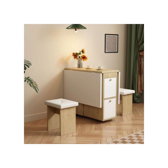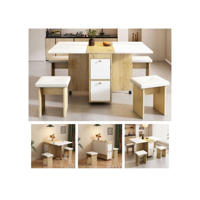 Комплект обеденного стола, (включая обеденный стол, 4 стула) 120*80*75 см, белый + дуб