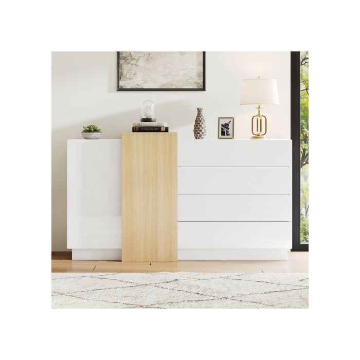 Buffet blanc brillant, meuble de rangement simple et moderne en bois