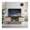 Armoire de rangement de 55 pouces comprenant deux tiroirs, deux compartiments de rangement ouverts et deux portes vitrées.