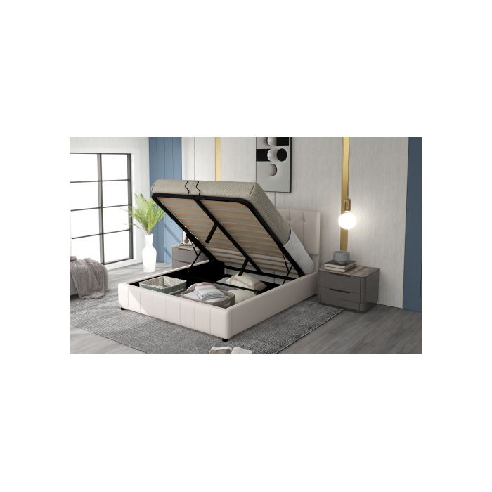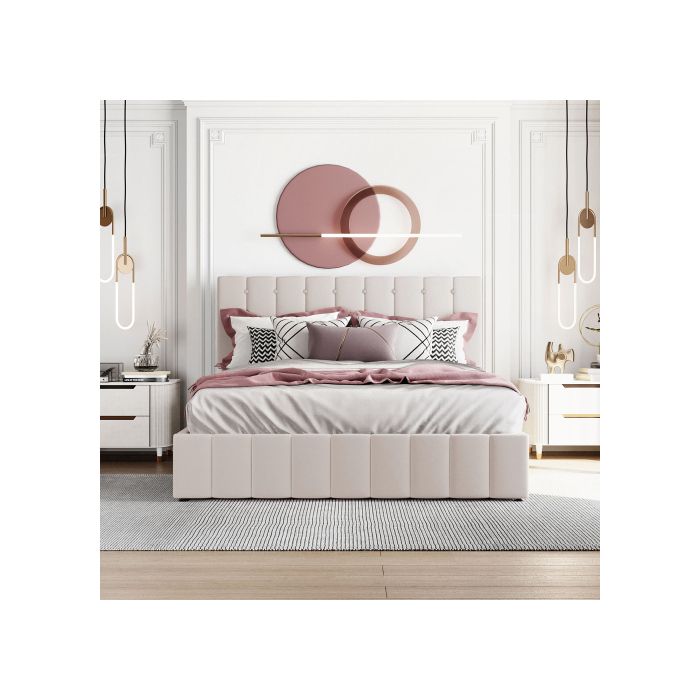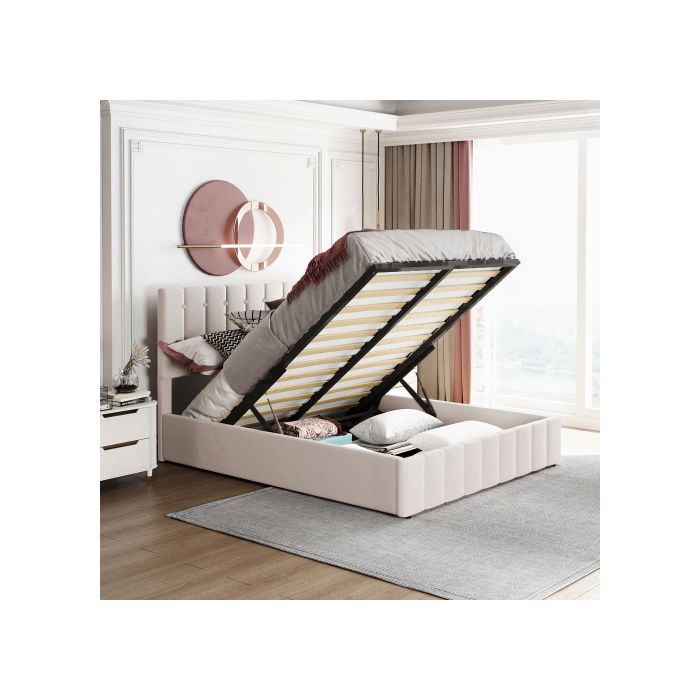 Lit rembourré 140*200, lit double, rangement du lit relevable hydrauliquement, tête de lit rembourrée réglable en hauteur