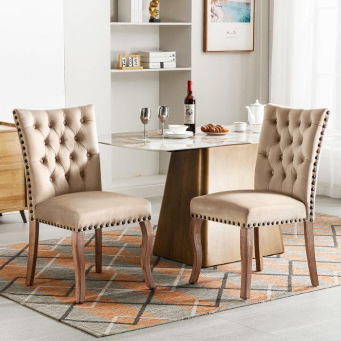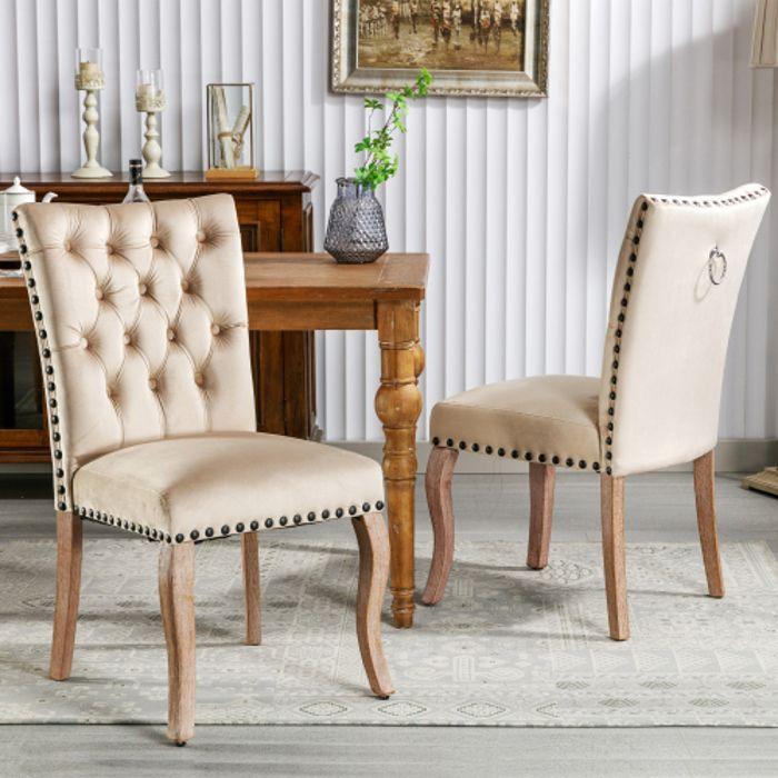 Chaises de salle à manger - MUVOE - Light Camel - Bois massif - Velours - Lot de 2