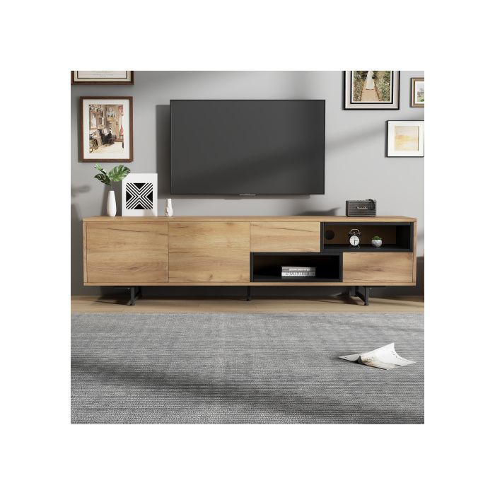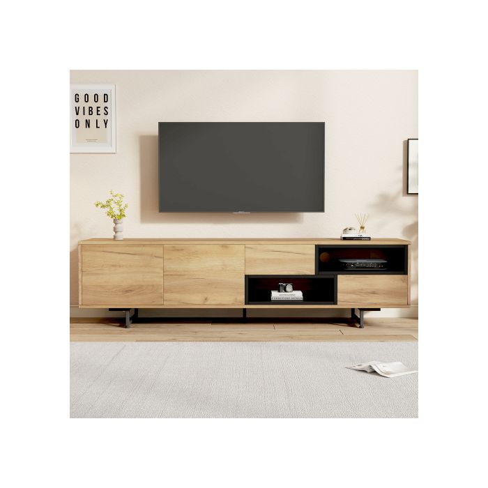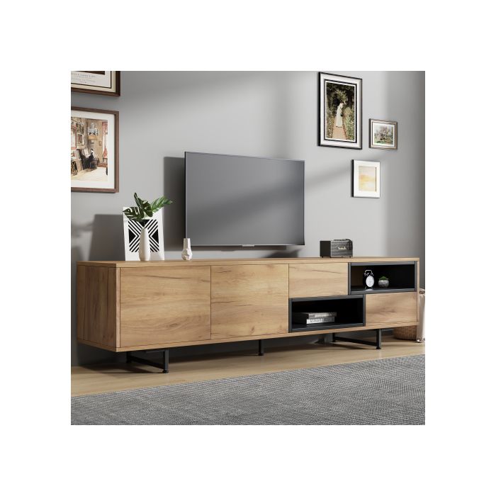 Meuble TV bas, rangement ouvert avec compartiment de marche, convient à un téléviseur jusqu'à 70", 173 x 38 x 48 cm