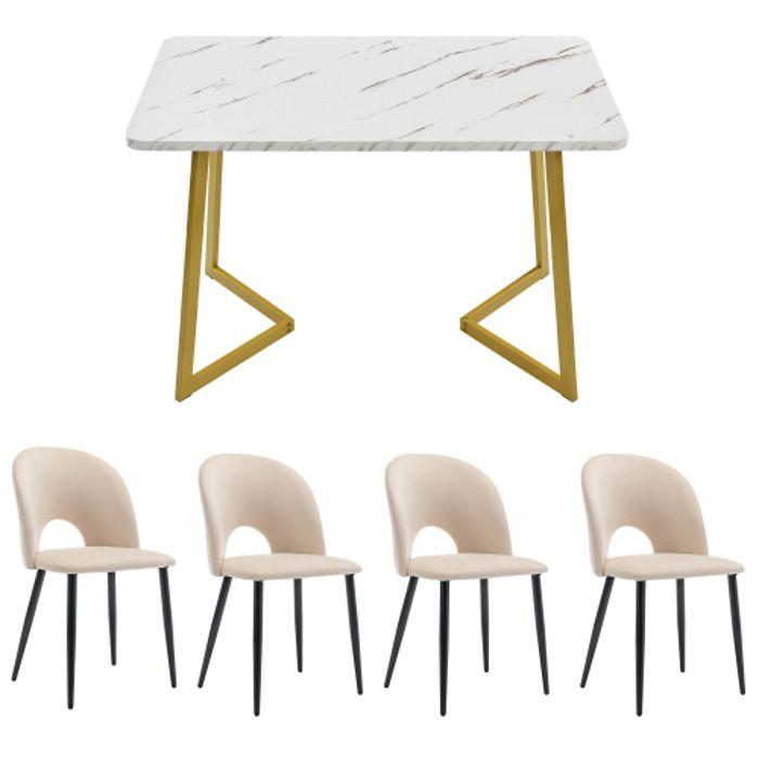 Обеденный комплект - MUVOE - Стол 117x68 см - 4 стула - Бежевый велюр - Регулируемые ножки