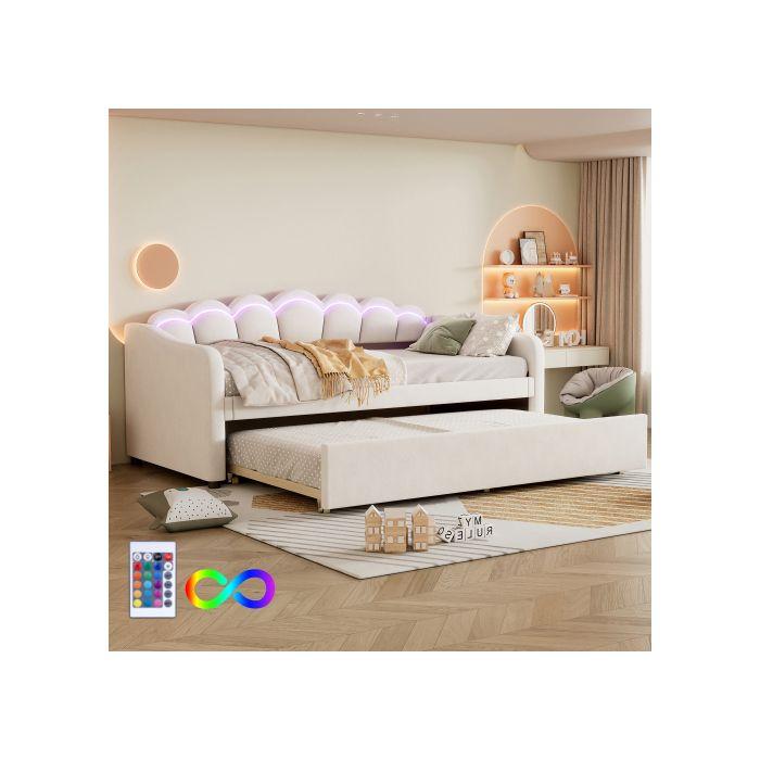 Lit de jour - Daybettt - 90x200 cm - Lit escamotable - Flanelle et MDF - LED réglable