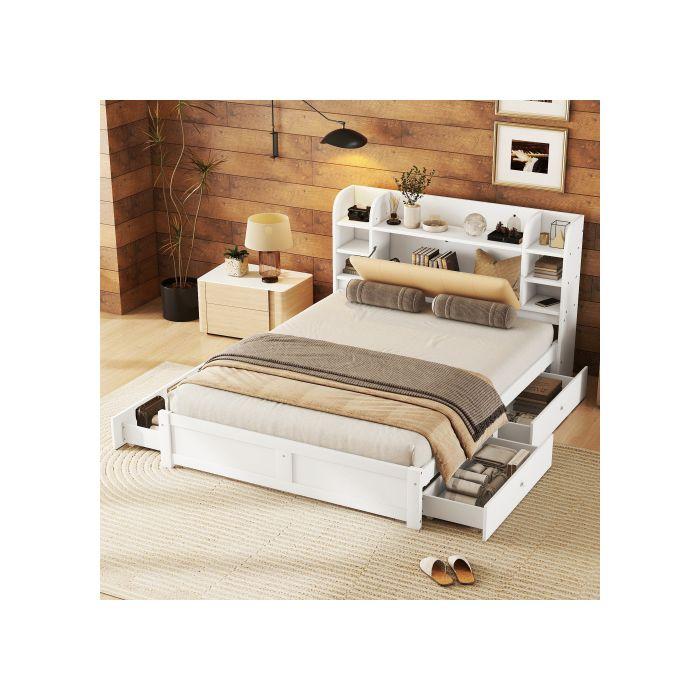 Lit - MUVOE - 160x200cm - Blanc - 4 tiroirs - Tête de lit relevable — купить товар онлайн с бесплатной доставкой по всему миру!