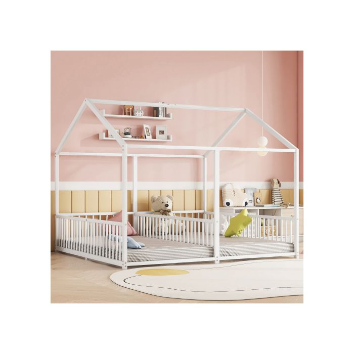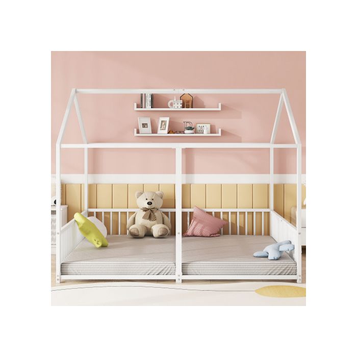 Lit en métal - MUVOE - 90x200 cm - Design maison - 2 places - Blanc