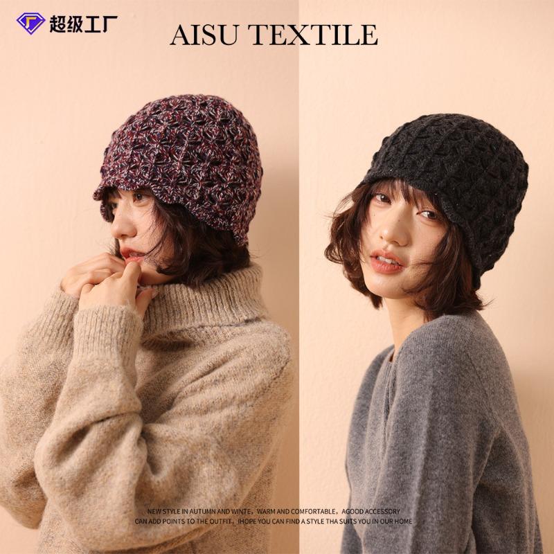 Шерстяная вязаная шапка-стопка женская осенне-зимняя новая теплая высококачественная однотонная с гофрированной защитой ушей шерстяная шапка