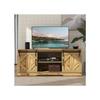 Meuble TV - MUVOE - 180 cm - 2 tiroirs en rotin - 2 portes en verre incurvées - Bois marron — купить товар онлайн с бесплатной доставкой по всему миру!