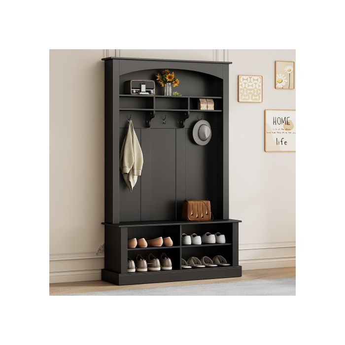 Meuble d’entrée - MUVOE - Kit vestiaire - 3 crochets - Rangement ouvert - Noir - H190/B120/T40 cm — купить товар онлайн с бесплатной доставкой по всему миру!