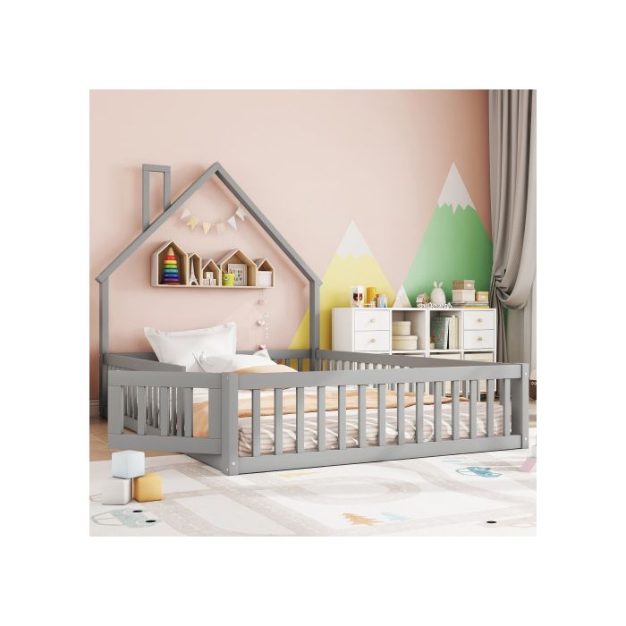 Lit - MUVOE - 140 x 200 cm - Rembourré - Pin - Style minimaliste - Gris — купить товар онлайн с бесплатной доставкой по всему миру!