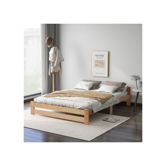 Solide lit en bois massif Lit futon en bois massif naturel Lit en avec tête de lit et sommier à lattes , naturel (200x140cm) — купить товар онлайн с бесплатной доставкой по всему миру!