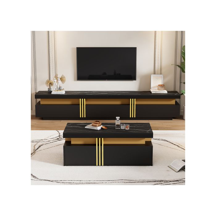 Ensemble mural TV noir, ensemble mural TV pour le salon, table basse + support TV, ensemble armoire multifonctionnel