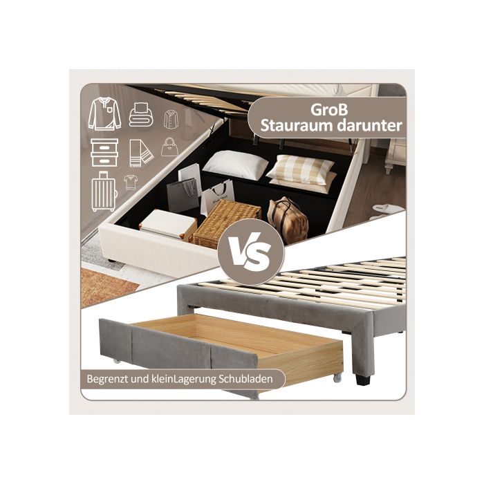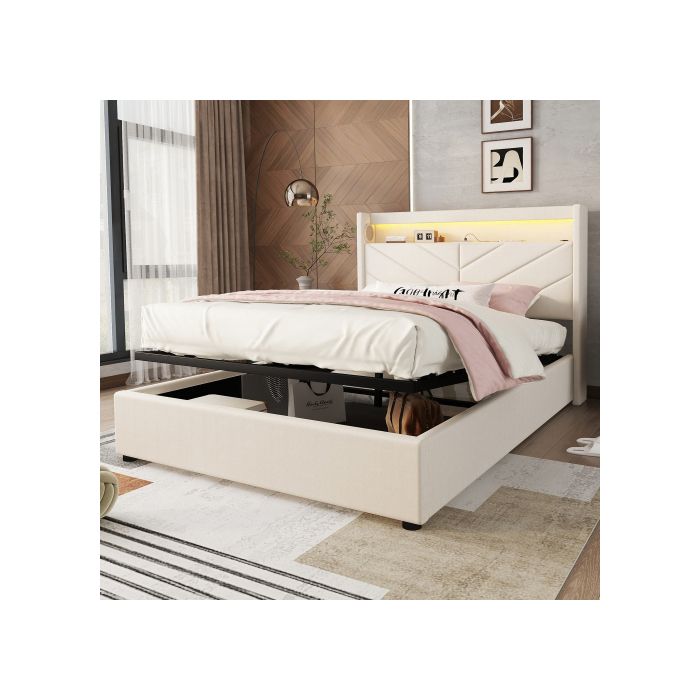 Lit rembourré - MUVOE - 140 x 190 cm - avec USB et chaîne hi-fi - éclairage LED - rangement hydraulique
