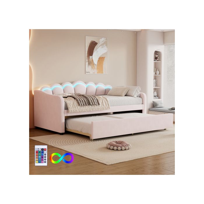 Lit de jour - MUVOE - 90x200 cm - Velours - Minimaliste - Rose