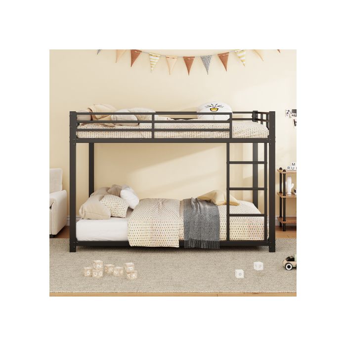 Lit superposé - MUVOE - 140x200 cm - Métal Noir - 2 places - Montage facile — купить товар онлайн с бесплатной доставкой по всему миру!
