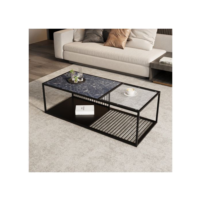Table basse - MUVOE - Fer forgé - Verre trempé - Rangement intégré - Design contemporain — купить товар онлайн с бесплатной доставкой по всему миру!