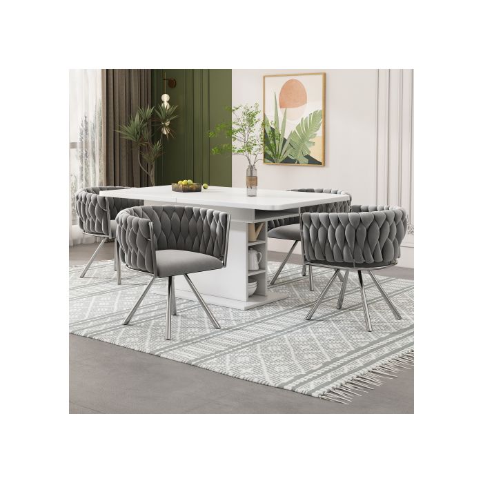 Chaise de salle à manger - MUVOE - Velours gris - Pivotante 360° - Lot de 4 - Design moderne — купить товар онлайн с бесплатной доставкой по всему миру!