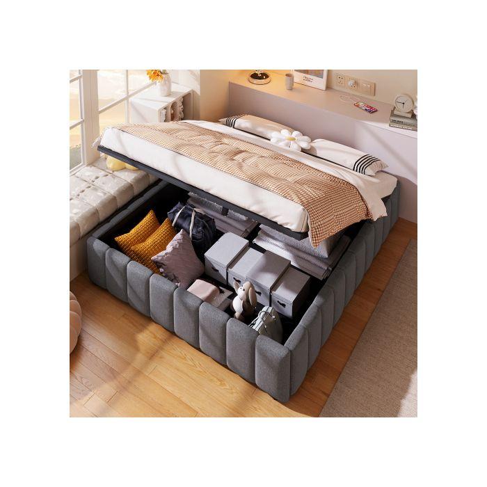 Lit - MUVOE - 140x200cm - Rembourré - Support hydraulique - Sans tête de lit