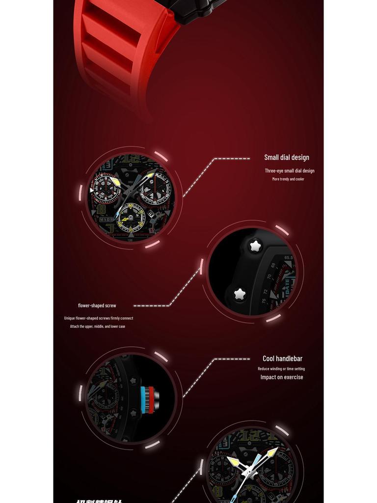 Мужские часы Richard Luminous Calendar в форме бочки, с полым дизайном, модный механический вид