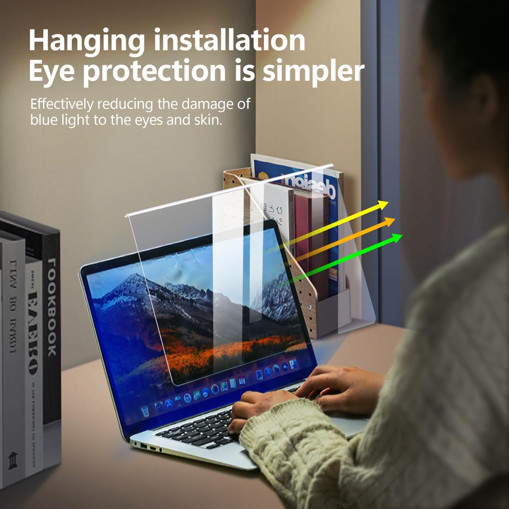 Легко установить: Легко монтируется за считанные секунды без. Снимите матовую защитную пленку с обеих сторон защитного покрытия экрана от синего света.. Затем расположите подогнутый край над верхним краем монитора, что удобно в использовании.