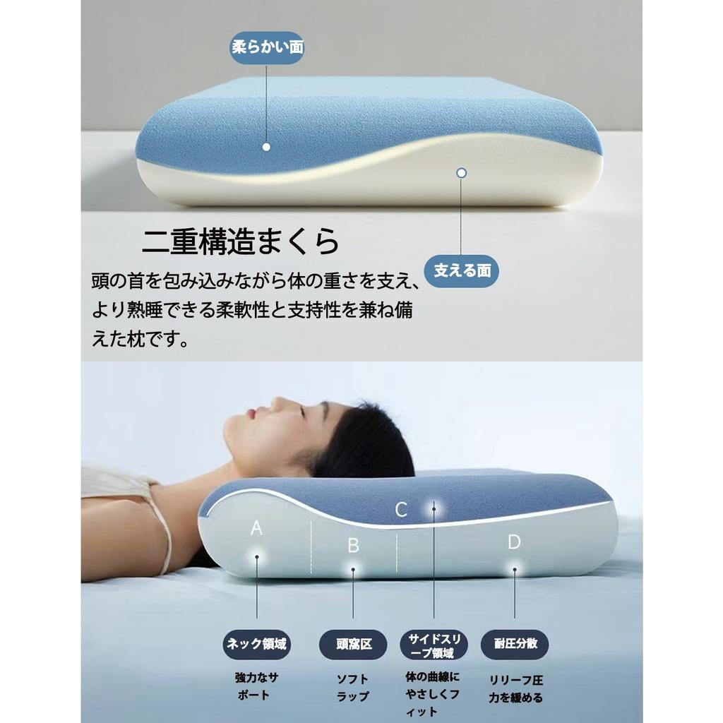 Memory Foam Pillow, Neck Support Pillow, Relieves Neck Pain, Shoulder Stiffness, Dual-Layer Construction, Prevents Snoring, Side Sleeping, Cervical