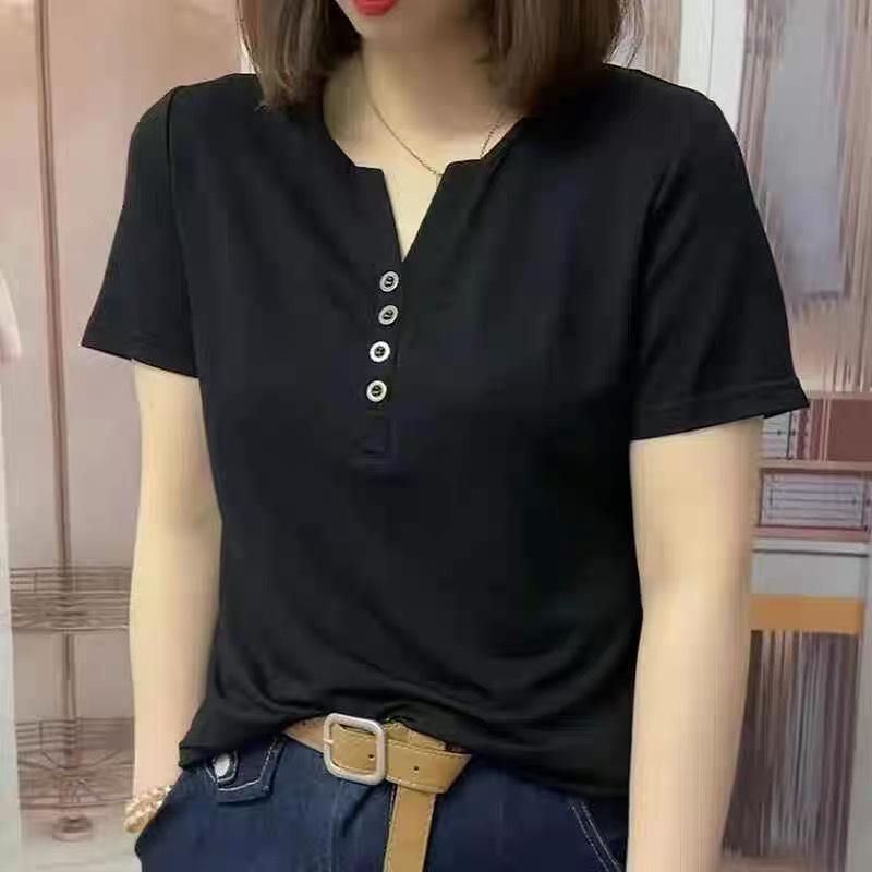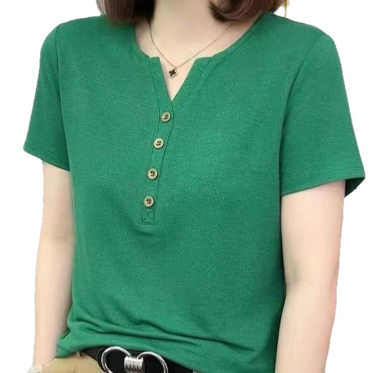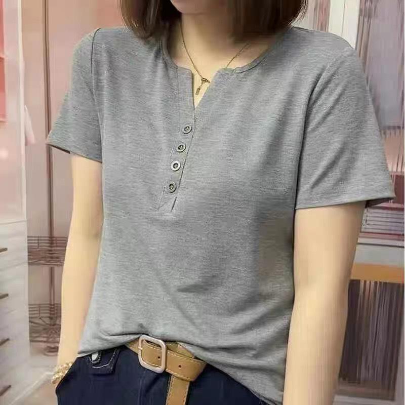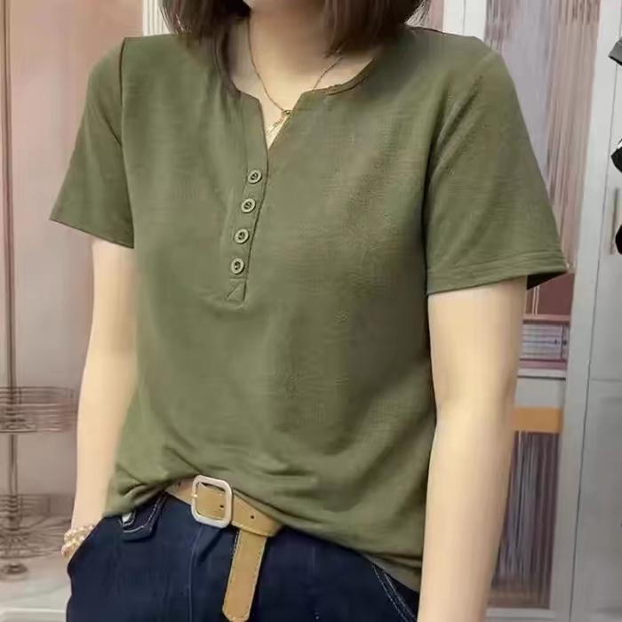 Женская хлопковая футболка с V-образным вырезом и коротким рукавом – Повседневный летний дизайн