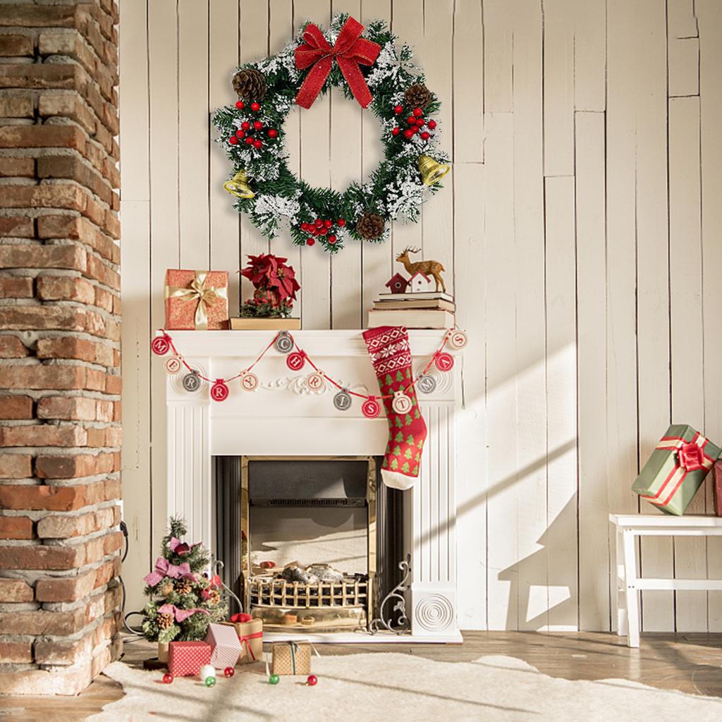 Красивые рождественские элементы: Наш рождественский венок для входной двери украшен потрясающими рождественскими элементами, включая ягоды, сосновые шишки, бантик, колокольчик и т. д.. Эти праздничные украшения добавят нотку праздничного настроения и создадут теплую и уютную атмосферу в вашем доме.