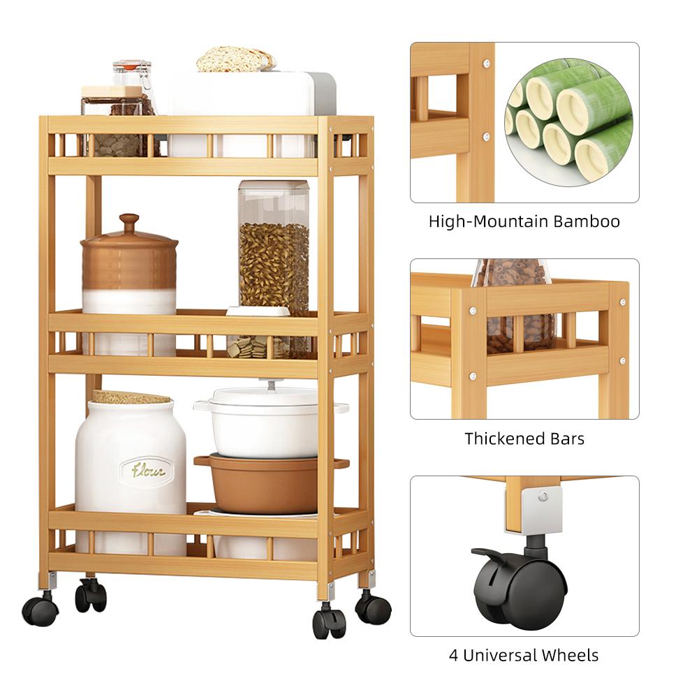 4-ярусная узкая тележка для хранения из массива бамбука с высокой горы, кухонный органайзер, выдвижная мобильная тележка для хранения на колесиках, кладовая