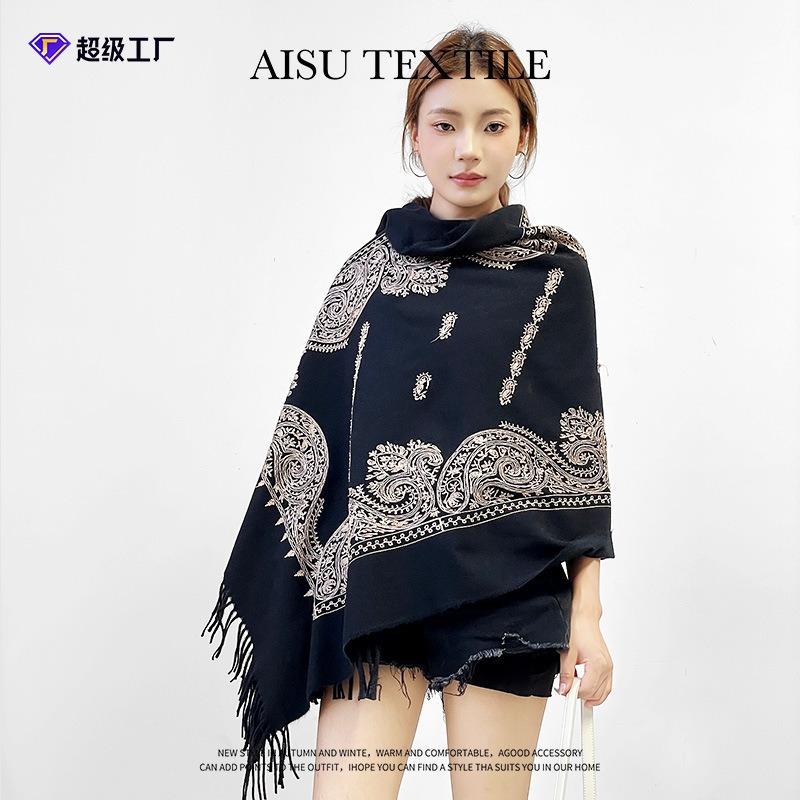 Осенне-зимние шарфы новые универсальные шарфы с вышивкой "кешью" женские утолщенные теплые шали с бахромой