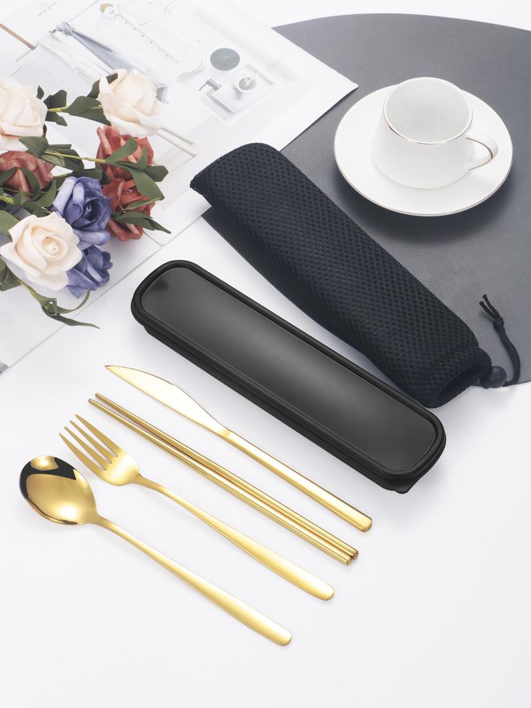 Набор столовых приборов из 4 предметов Нож Вилка Ложка Палочки для еды Коробка Столовые приборы Портативные столовые приборы Дорожные столовые приборы с коробкой