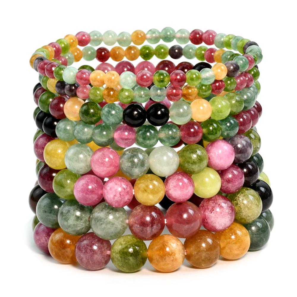 Богемский браслет из бисера с турмалином-радугой: Красочные женские украшения из эластичного шнура в один оборот