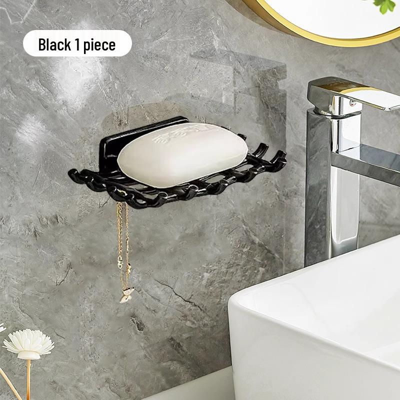 Настенная самоклеящаяся мыльница без сверления с подставкой для стекания воды и крючками для ванной комнаты