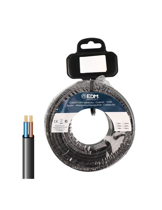 Bobine 5m Câble Plat Parallèle Noir 2x2,5mm, Edm. — купить товар онлайн с бесплатной доставкой до всему миру!