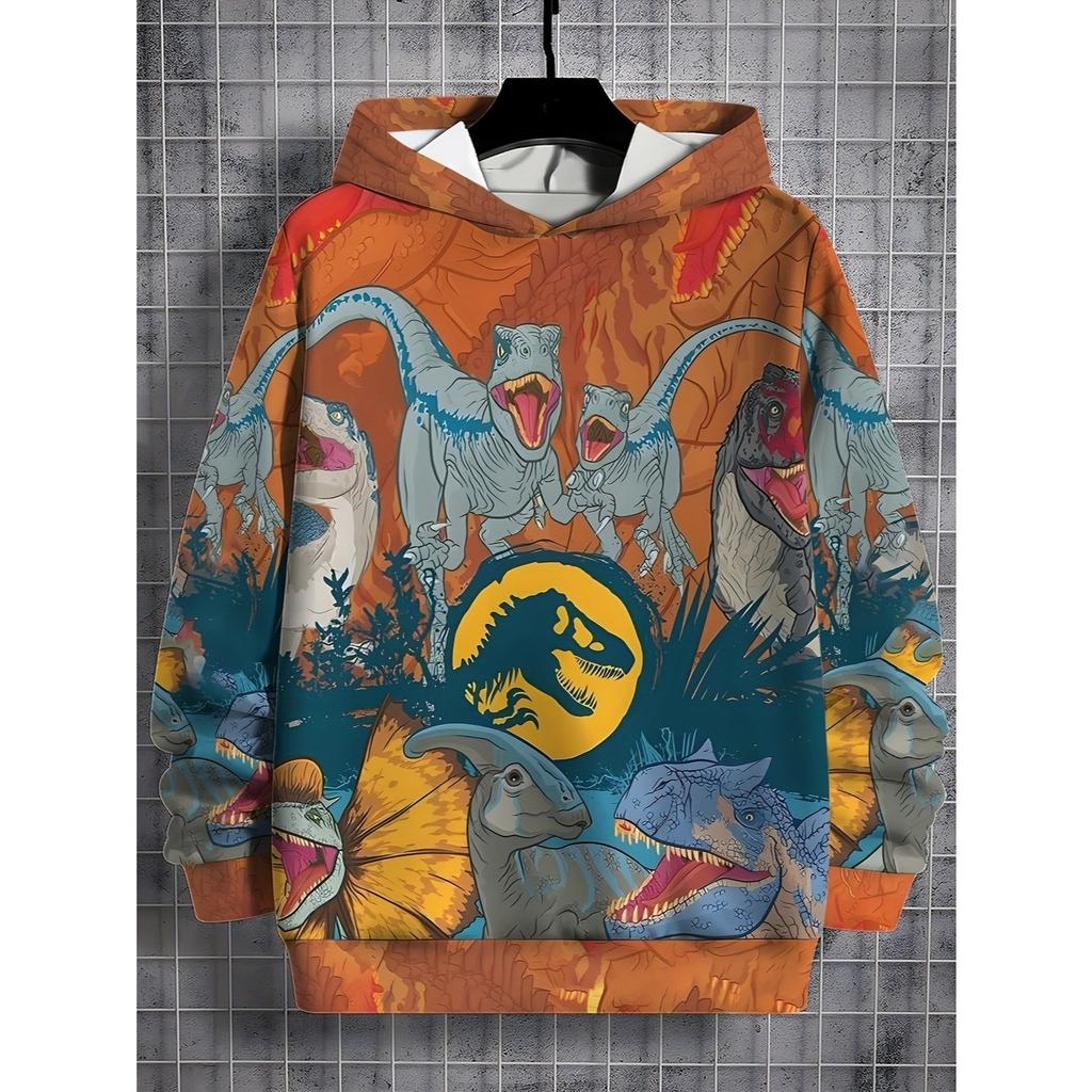 Толстовка с капюшоном с длинными рукавами с 3D-принтом динозавра для мальчика, спортивный повседневный пуловер для весны и осени
