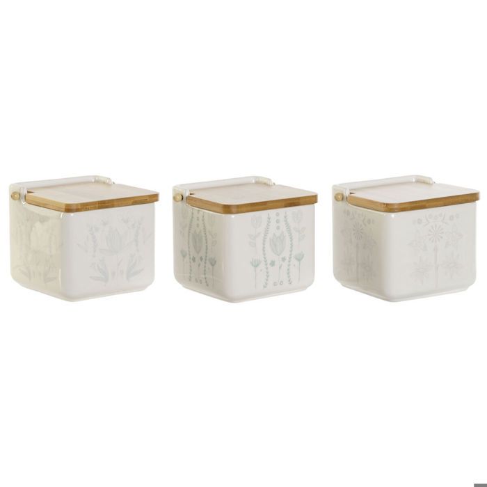Salière - DKD Home Decor - 750 ml - Couvercle en bambou - Dimensions 14x12,5x12 cm - Set de 3