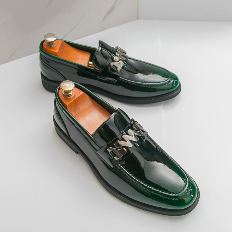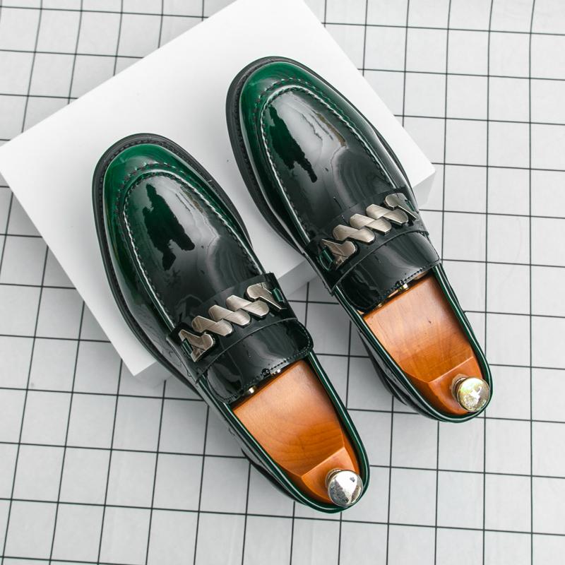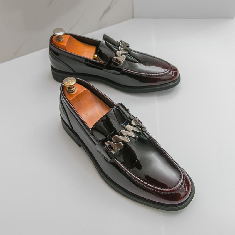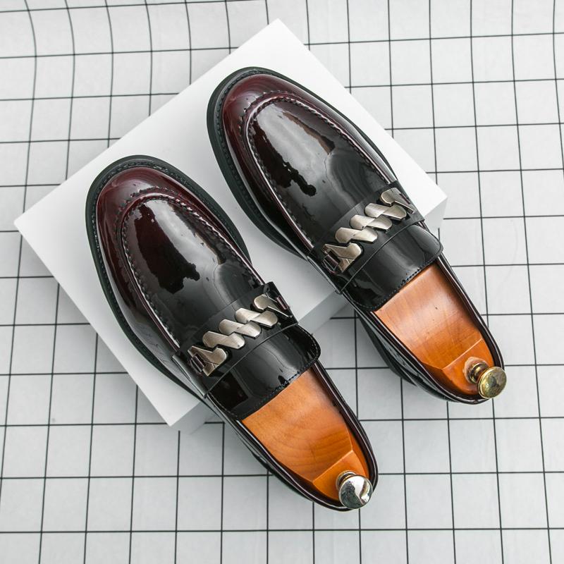 Весна Роскошный Бренд Мужские Лакированные Кожаные Удобные Дышащие Остроносые Мужские Туфли на Блочном Каблуке Банкетные Деловые Повседневные Кожаные Туфли
