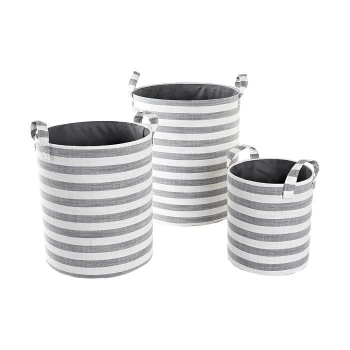 Paniers - Non précisé - Lot de 3 - Coton gris rayé - 35 x 35 x 40 cm - Mixte — купить товар онлайн с бесплатной доставкой до всему миру!